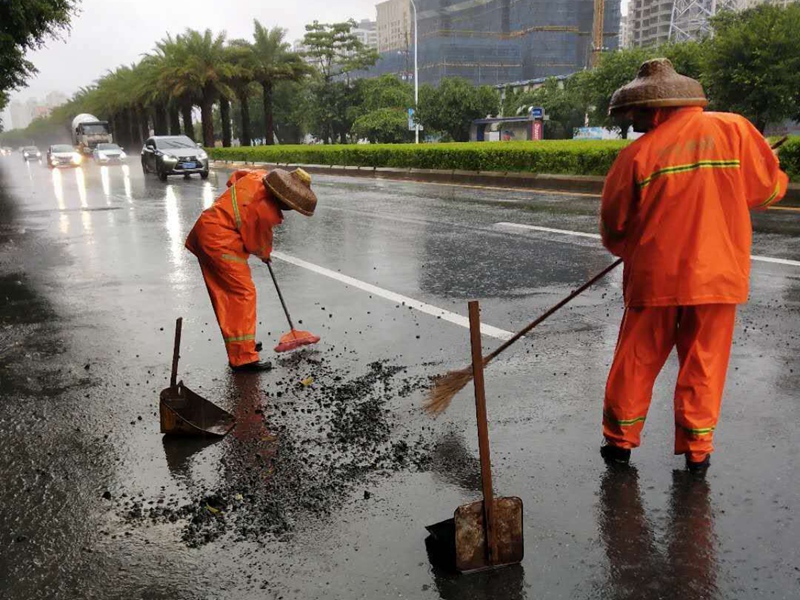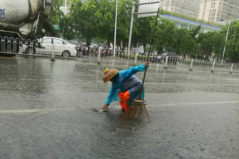 走在大街小巷上,隨處可以看到忙碌的環(huán)衛(wèi)工人,正冒雨正忙著打掃樹(shù)枝、樹(shù)葉和清理各種垃圾。