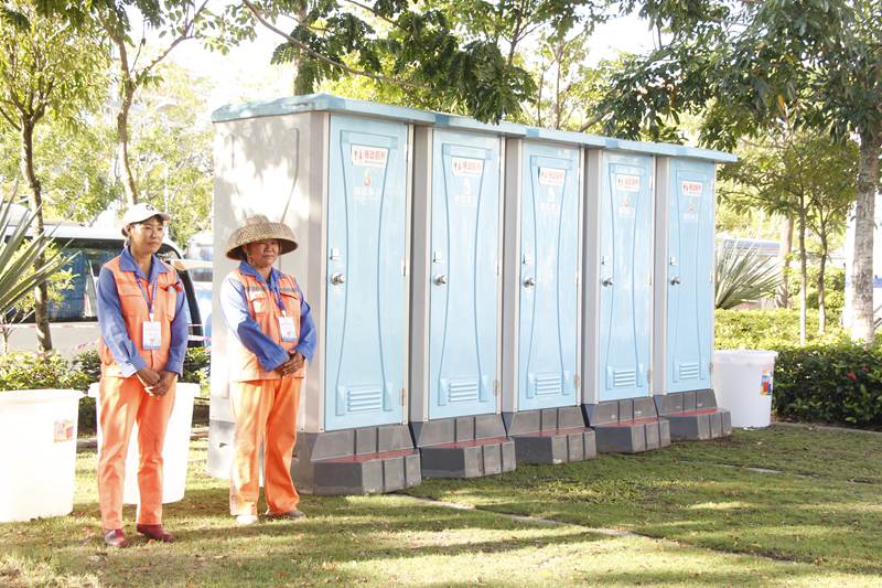 昨天上午,集團(tuán)公司在三亞市體育中心場(chǎng)館周邊投放40座移動(dòng)公廁,并保障公廁各類設(shè)施、設(shè)備完好,上下水通暢,洗手液、卷紙等物品供應(yīng)正常,做到公廁內(nèi)外環(huán)境衛(wèi)生干凈整潔,無異味。