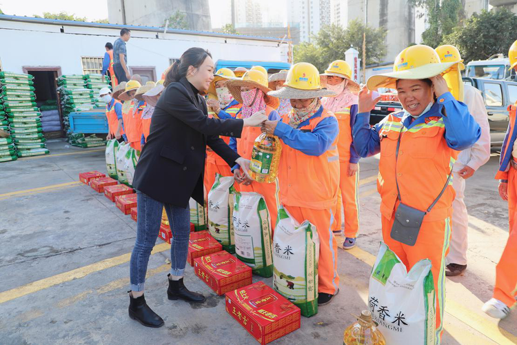 隨后總裁陳云、副總羅京軒、工會(huì)主席高斐斐、婦聯(lián)主席熊牡丹分別為部分職工發(fā)放慰問品,并送上了節(jié)日問候。