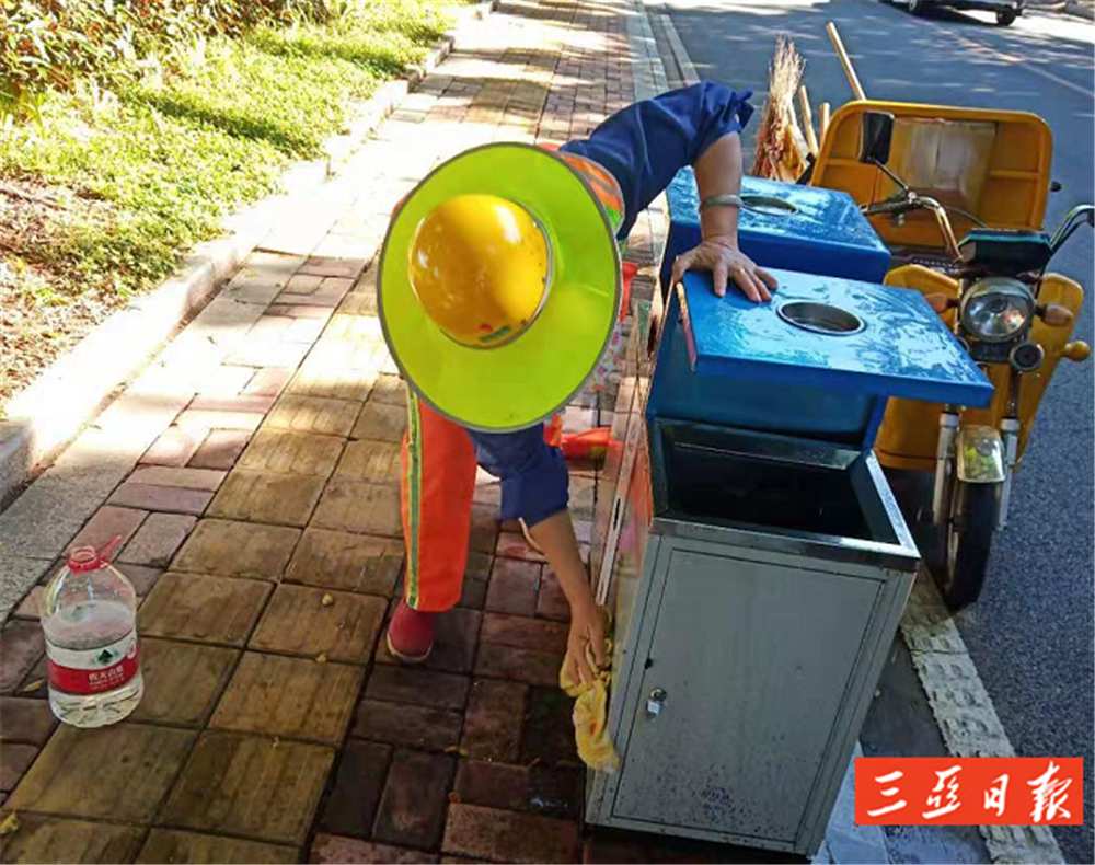 今年47歲的藍(lán)亞燕,是鹿回頭路段的環(huán)衛(wèi)工人。從2010年5月11日那天算起,藍(lán)亞燕在三亞做環(huán)衛(wèi)工作已整整3928天,這一做就是10年有余。