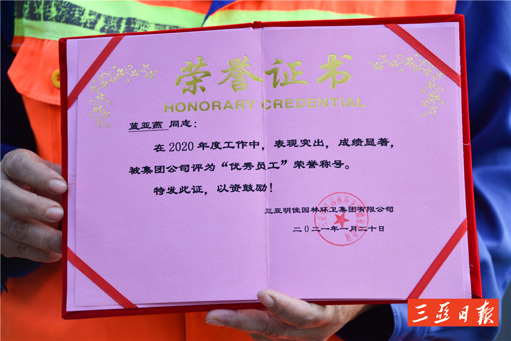“亞燕是一個(gè)工作負(fù)責(zé)、認(rèn)真的員工,她工作讓我很放心,平時(shí)她還主動(dòng)幫助其他工人,累活也搶著干。”明佳環(huán)衛(wèi)天涯一隊(duì)隊(duì)長(zhǎng)林海菊這樣評(píng)價(jià)藍(lán)亞燕。