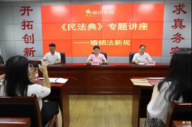 為了引導公司廣大女職工樹立正確的婚姻觀、家庭觀,有利于切實破除婚姻家庭領域中的封建思想和陳規(guī)陋習,遏制家庭暴力的發(fā)展態(tài)勢。2021年7月5日16時,明佳集團婦聯在公司工會的大力支持下組織開展了《民法典》婚姻法新規(guī)專題講座,講座由海南錦瀚律師事務所王亞文律師為70多名女職工授課。